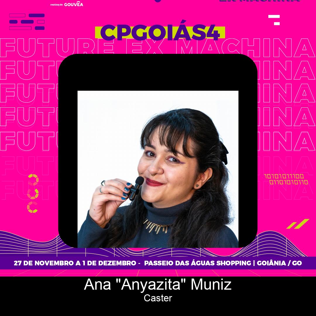 Anyazita é narradora do cenário de games brasileiro e uma das vozes que dão vida aos momentos mais emocionantes dos eSports. Com mais de 15 modalidades já eternizadas pelo seu trabalho, ela se destaca pela capacidade de transformar cada partida em uma história épica. Mais do que apenas uma narradora, Anyazita é uma comunicadora apaixonada, sempre pronta para inspirar e envolver o público no universo competitivo.