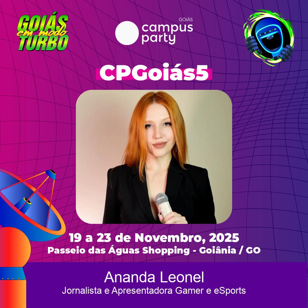 Ananda Leonel é jornalista e creator gamer e geek, repórter gamer na Serra Dourada/SBT, primeira apresentadora gamer na TV aberta e editora do Aperte o Play (TV Sagres), único programa gamer da TV aberta em Goiás e Minas há 6 anos. Pioneira em eSports na comunicação do Centro-Oeste, apresenta os maiores eventos da região, como Go Game Festival, Video Game Show, JUBs e GamePark Experience. Palestrante, roteirista criativa e diretora de TV, possui parceria com grandes marcas e é host do podcast Aperte o Pause e reconhecida por conectar games, tecnologia, educação e impacto social alinhados à Agenda 2030 da ONU.