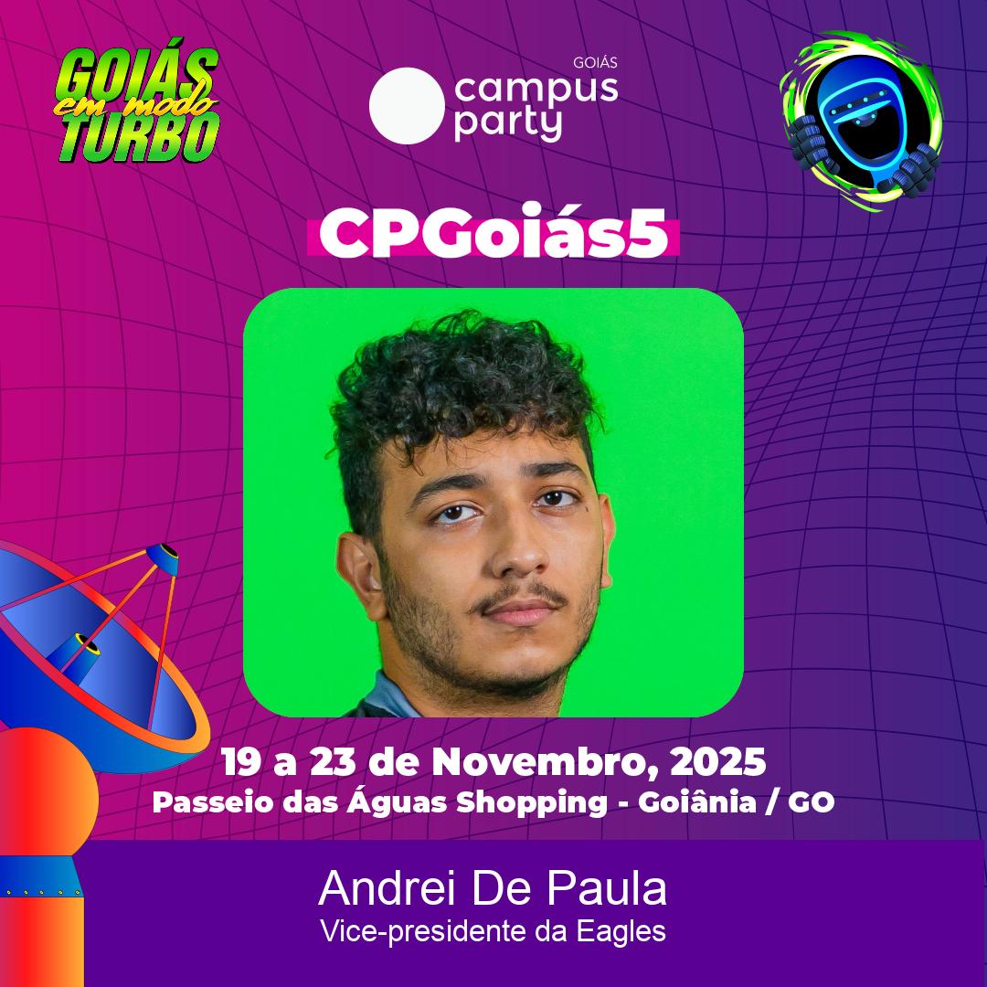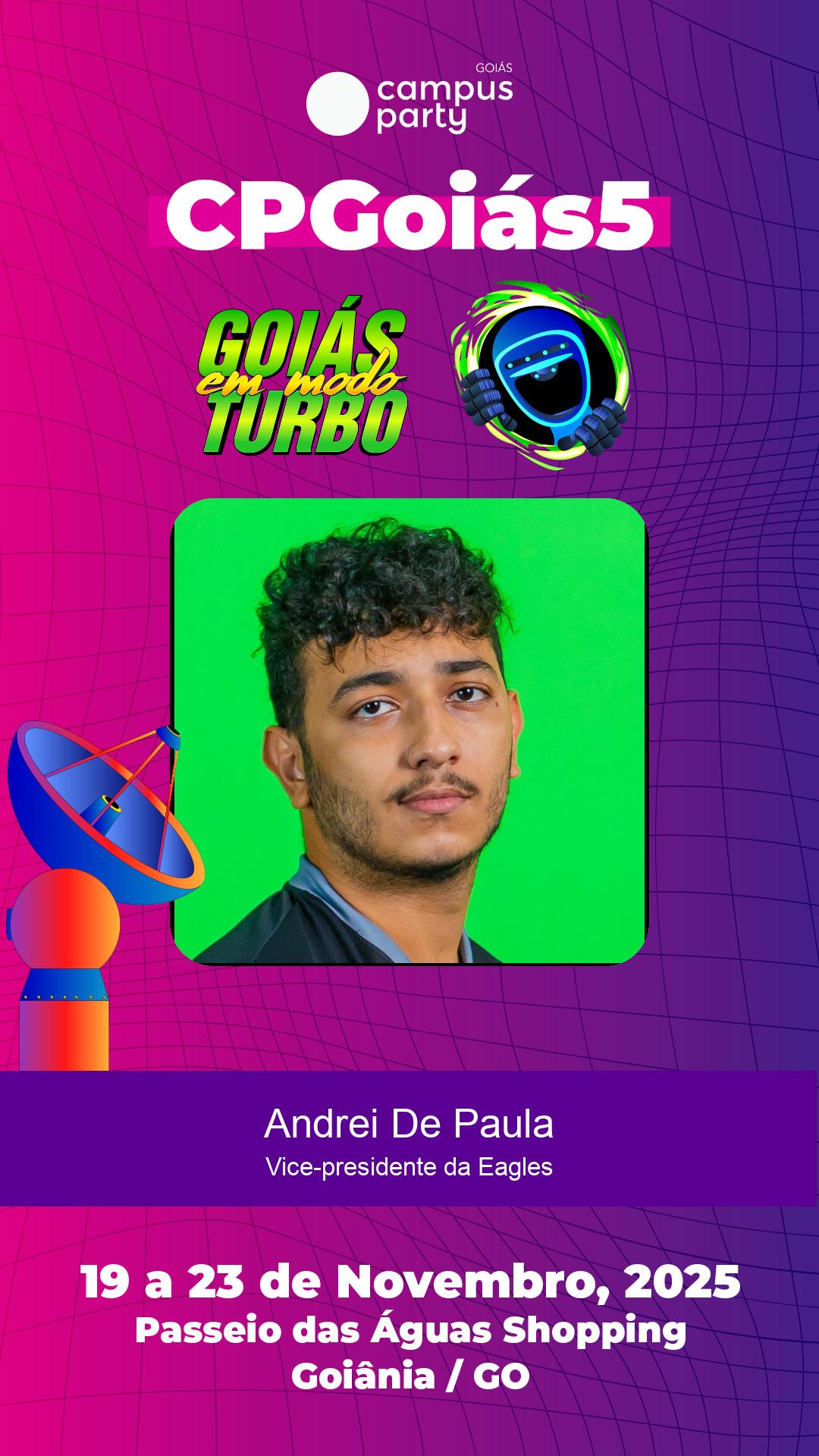 Me chamo Andrei Aguiar, tenho 24 anos e sou o vice-presidente da Eagles, além de ter sido capitão do time de Valorant, conquistando títulos como o tricampeonato goiano de Valorant e o campeonato universitário brasileiro como treinador. Estou na Eagles desde 2022.