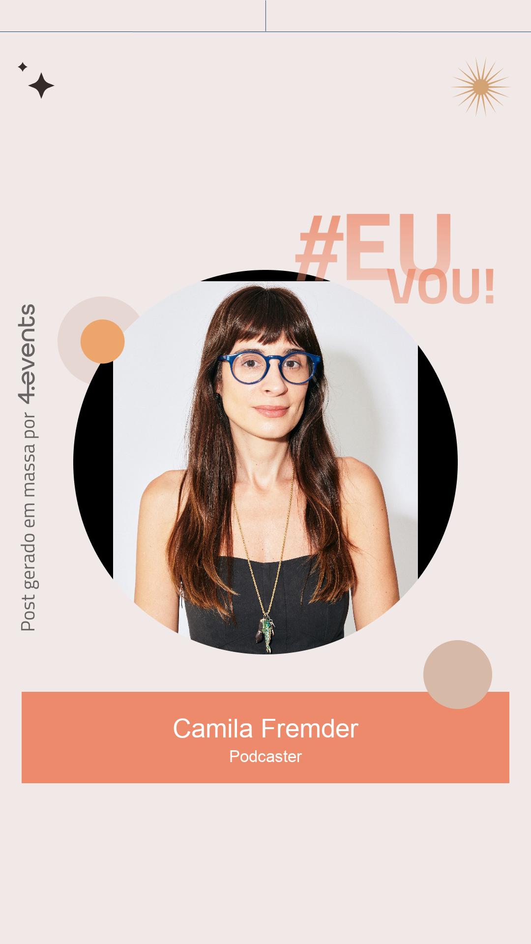 Camila Fremder é escritora, roteirista, creator e podcaster. Autora de livros de sucesso e criadora do podcast “É Nóia Minha?”, que já soma mais de 85 milhões de plays e turnê nacional, destaca-se pelo olhar autêntico e bem-humorado sobre o cotidiano.