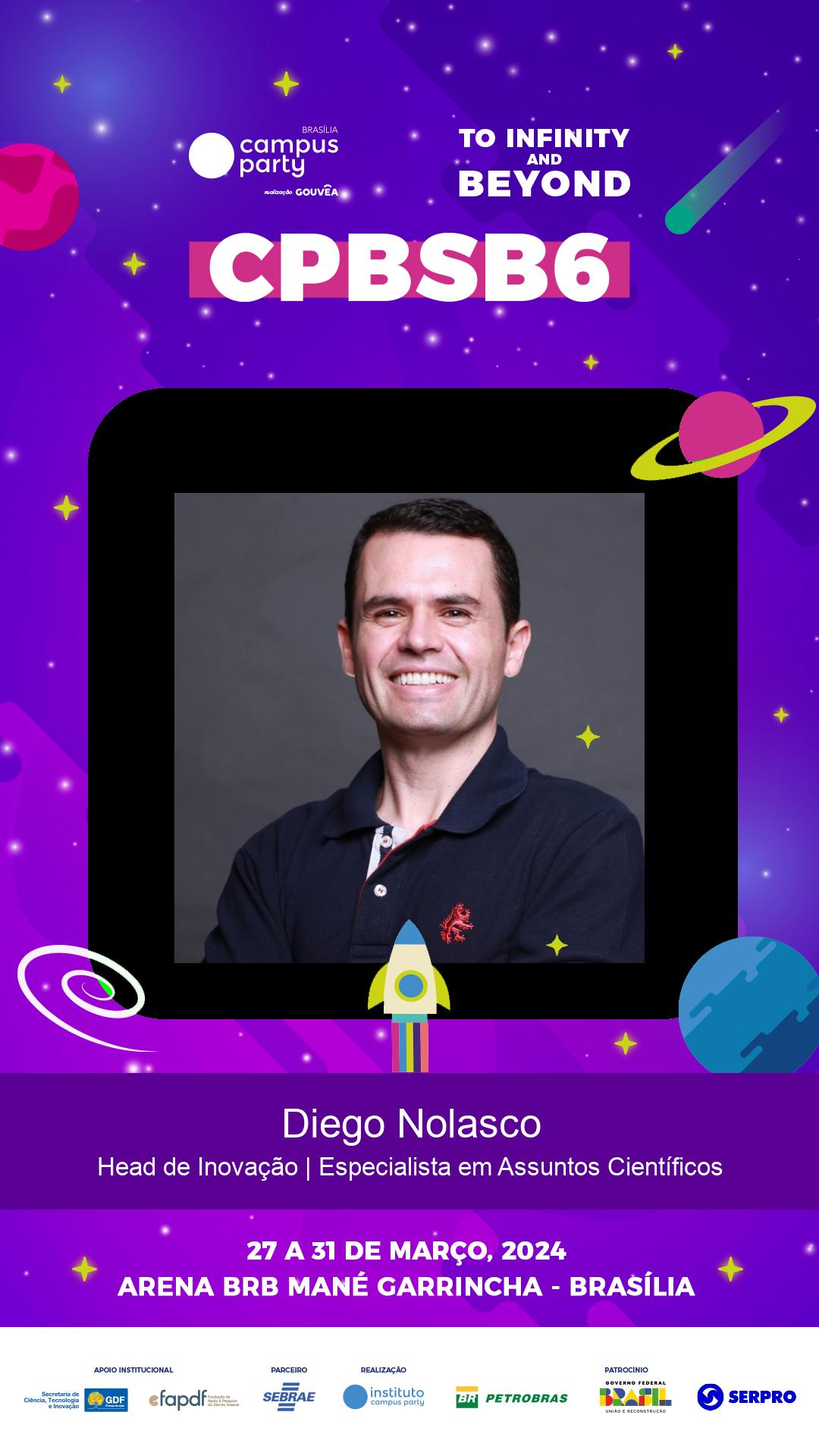 Diego Nolasco é graduado em Física, defendeu mestrado e doutorado em Biofísica Molecular na Universidade Estadual Paulista - UNESP, realizou pesquisa de pós-doutorado no Massachusetts Institute of Technology - MIT, onde foi contratado como cientista visitante, e detém um MBA em Gerenciamento de Projetos pela Fundação Getúlio Vargas - FGV. Foi professor em diferentes cursos de graduação e pós-graduação na Universidade Católica de Brasília - UCB e hoje tem se dedicado a converter sonhos em projetos, projetos em negócios e negócios em resultados.