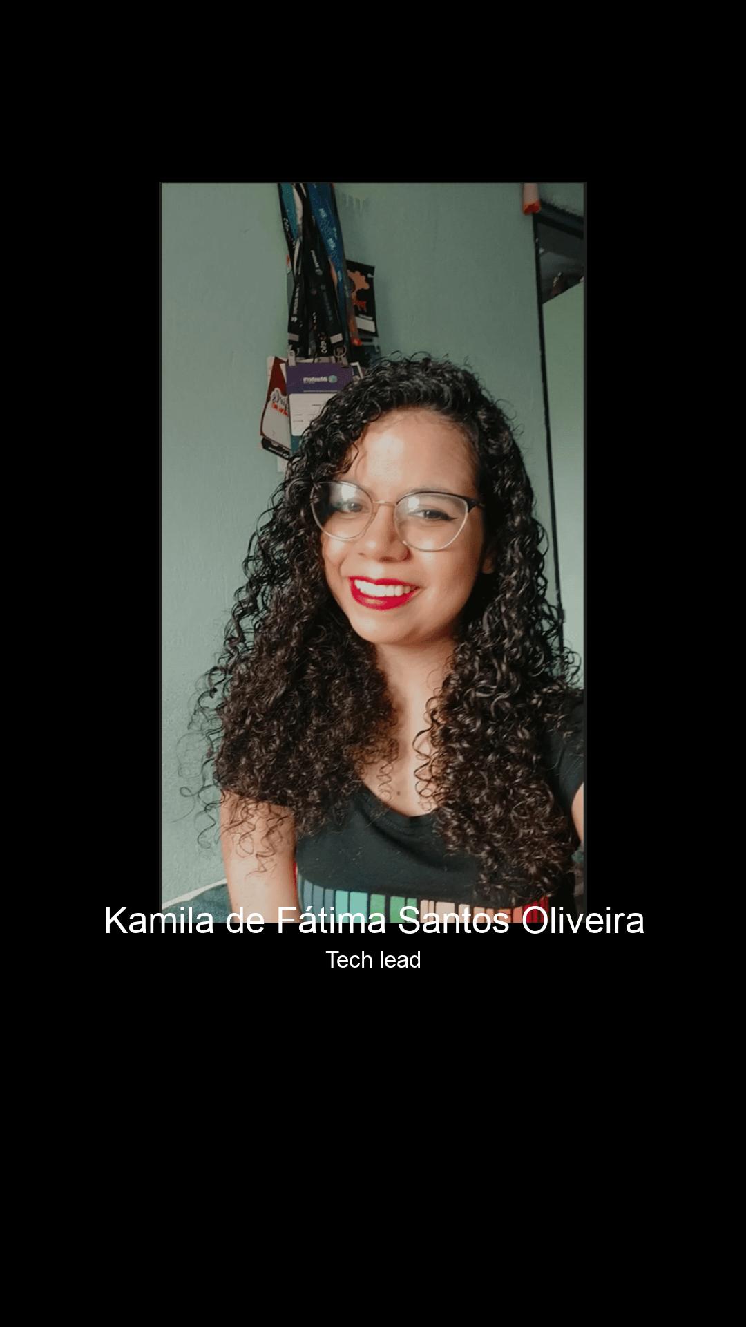 Tech lead na zup innovation, microsoft mvp, co-autora dos livros jornada java e jornada microsservicos, criadora de conteudo no insta e youtube kamila code e organizadora de comunidades de tecnologia.