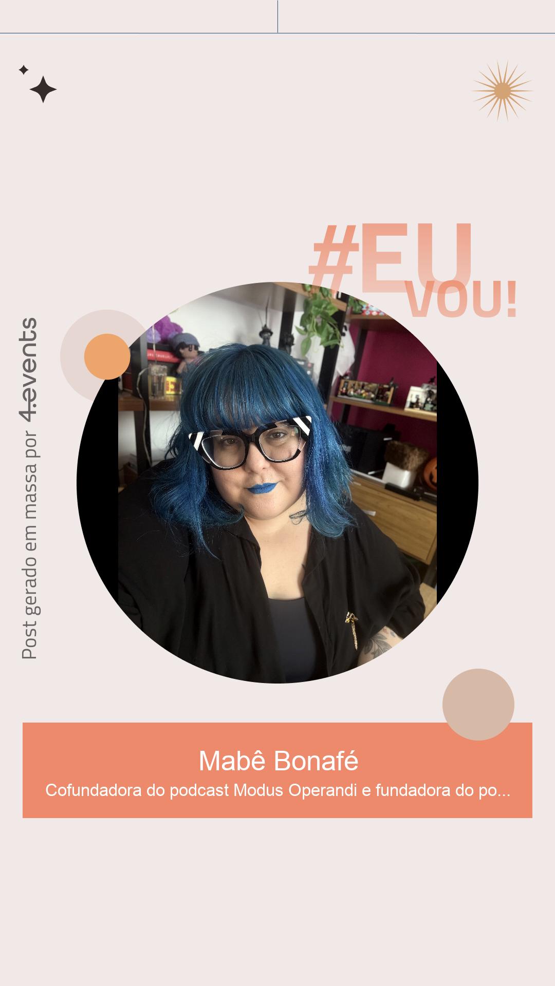 Mabê Bonafé é criadora e apresentadora dos podcasts Modus Operandi e Caso Bizarro, que exploram temas de true crime, mistérios e histórias sobrenaturais. Também é autora do best-seller Modus Operandi: Guia de True Crime, publicado pela Intrínseca.
