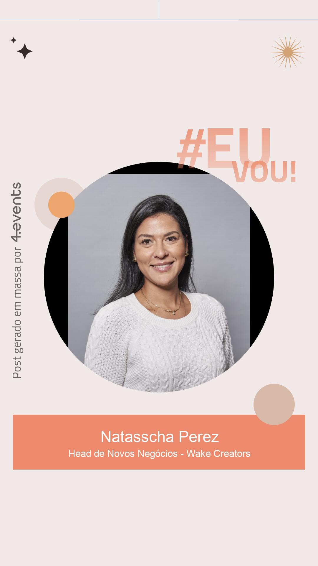 Natasscha Perez é Head de Novos Negócios na Wake Creators, plataforma com 11 anos de mercado, mais de 300 mil influenciadores e entrega end to end (casting, operação e relatoria). Com mais de 17 anos de experiência nas áreas de publicidade e gestão de projetos, atuou com segmentos de finanças, varejo (alimentar moda), construção, turismo e teve passagem pela DM9, Leo Burnett e Kwai.