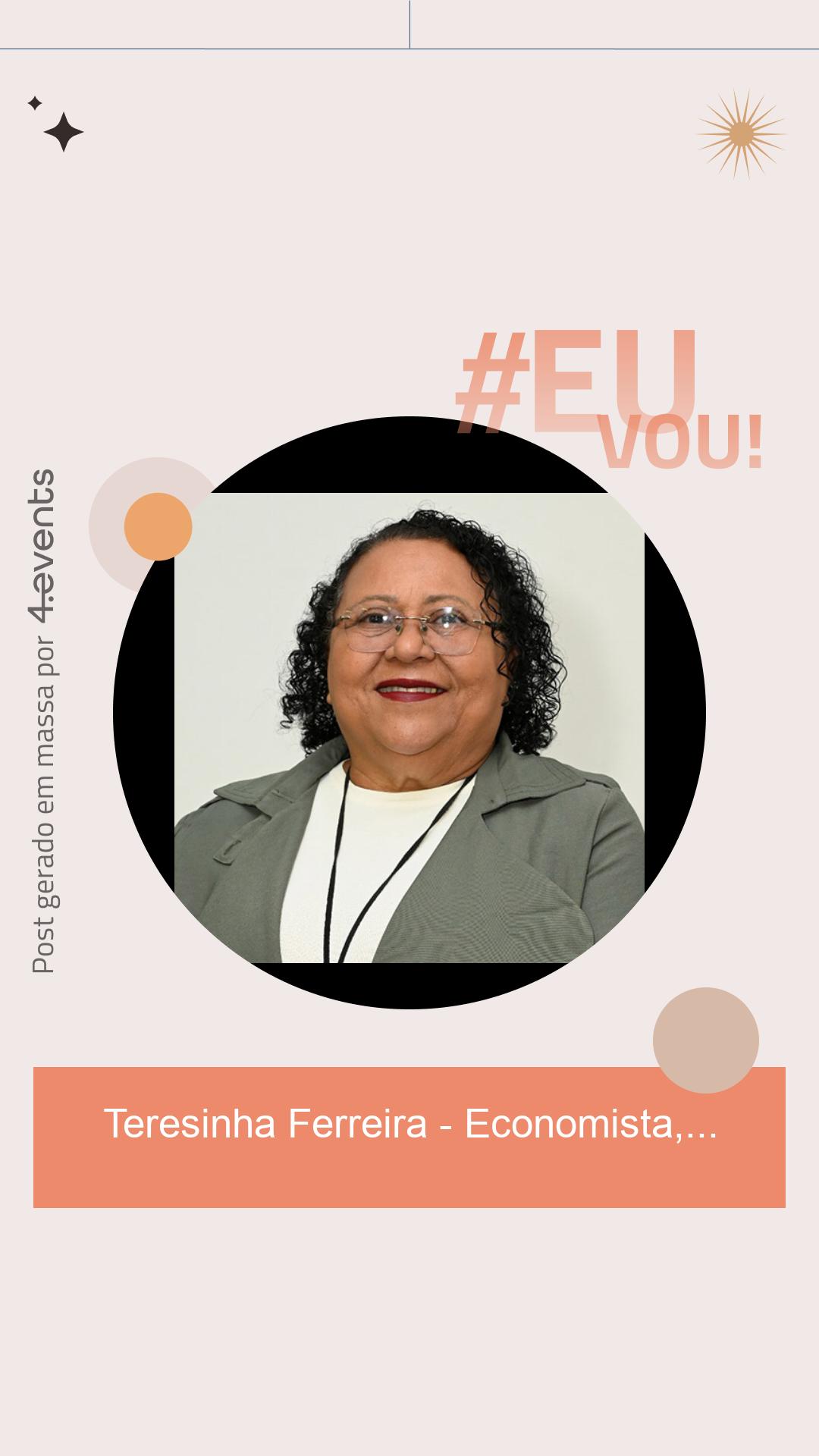 Teresinha de Jesus Ferreira da Silva é graduada em Ciências Econômicas pela Universidade Federal do Piauí, com mestrado em Desenvolvimento e Meio Ambiente pela mesma instituição. É servidora da Prefeitura Municipal de Teresina há mais de 30 anos. É superintendente do Instituto do Patrimônio Histórico e Artístico Nacional (Iphan) no Piauí, conselheira federal e coordenadora da Comissão Mulher Economista e Diversidade do Cofecon.